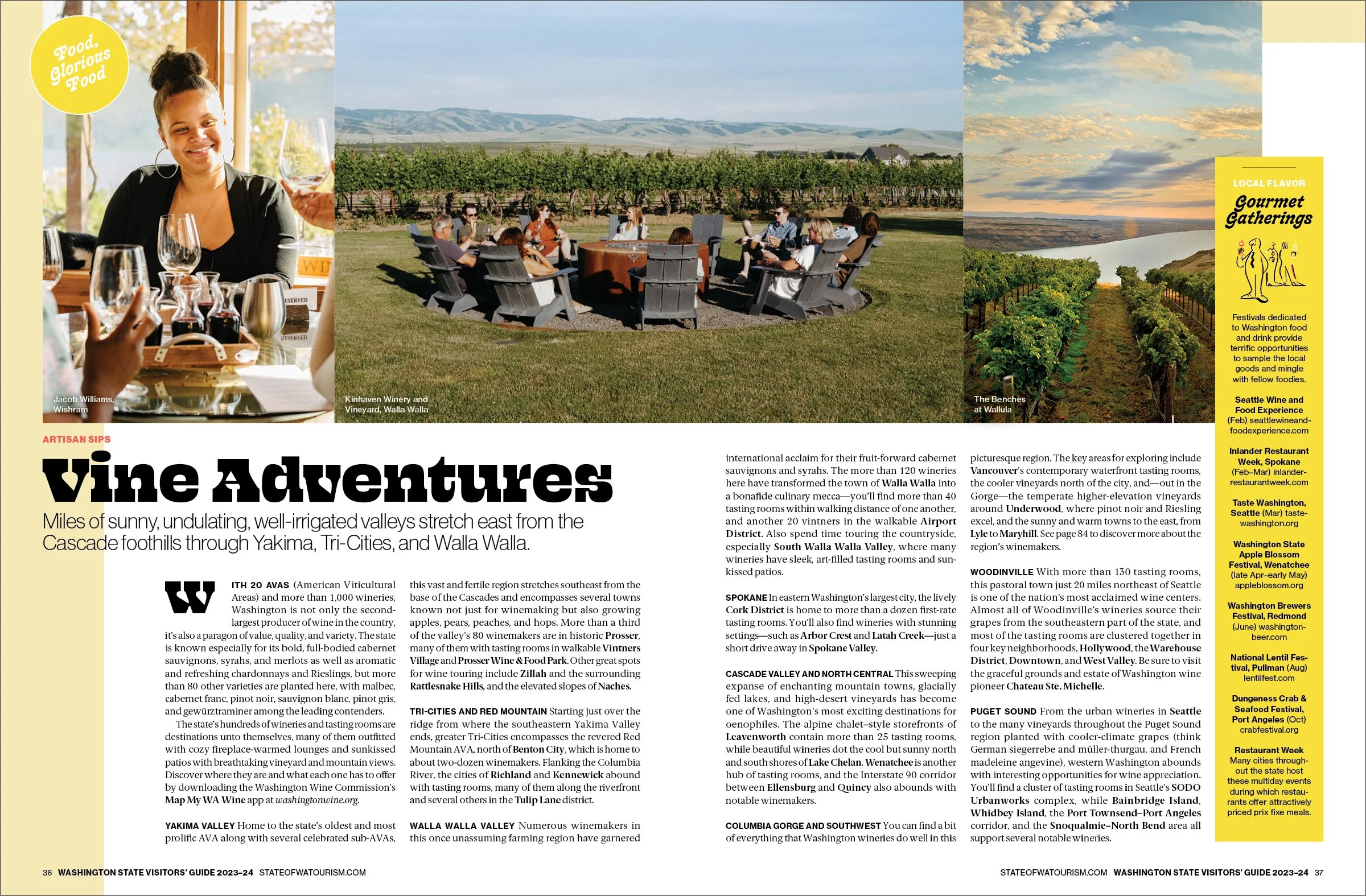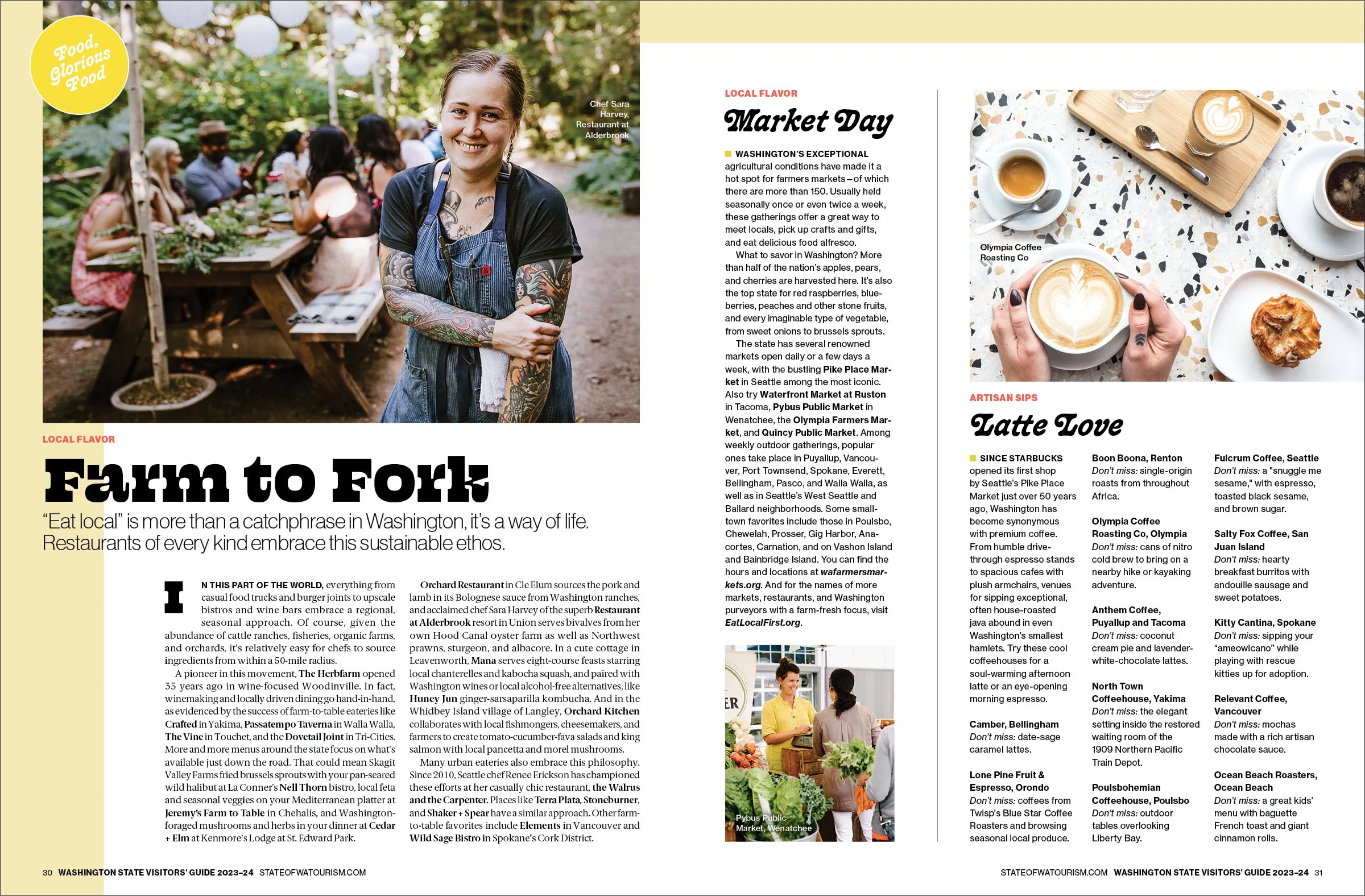 Art direction and design for a Washington State Visitors’ Guide feature about the state’s thriving food and beverage industry.